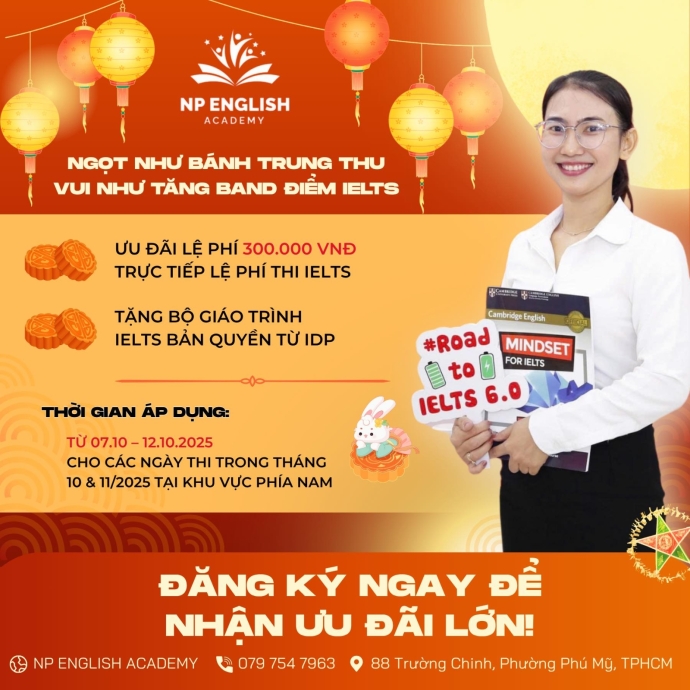🌕✨ TRUNG THU NHẬN ƯU ĐÃI – BAND ĐIỂM IELTS BỨT PHÁ CÙNG NP ENGLISH ✨🌕
